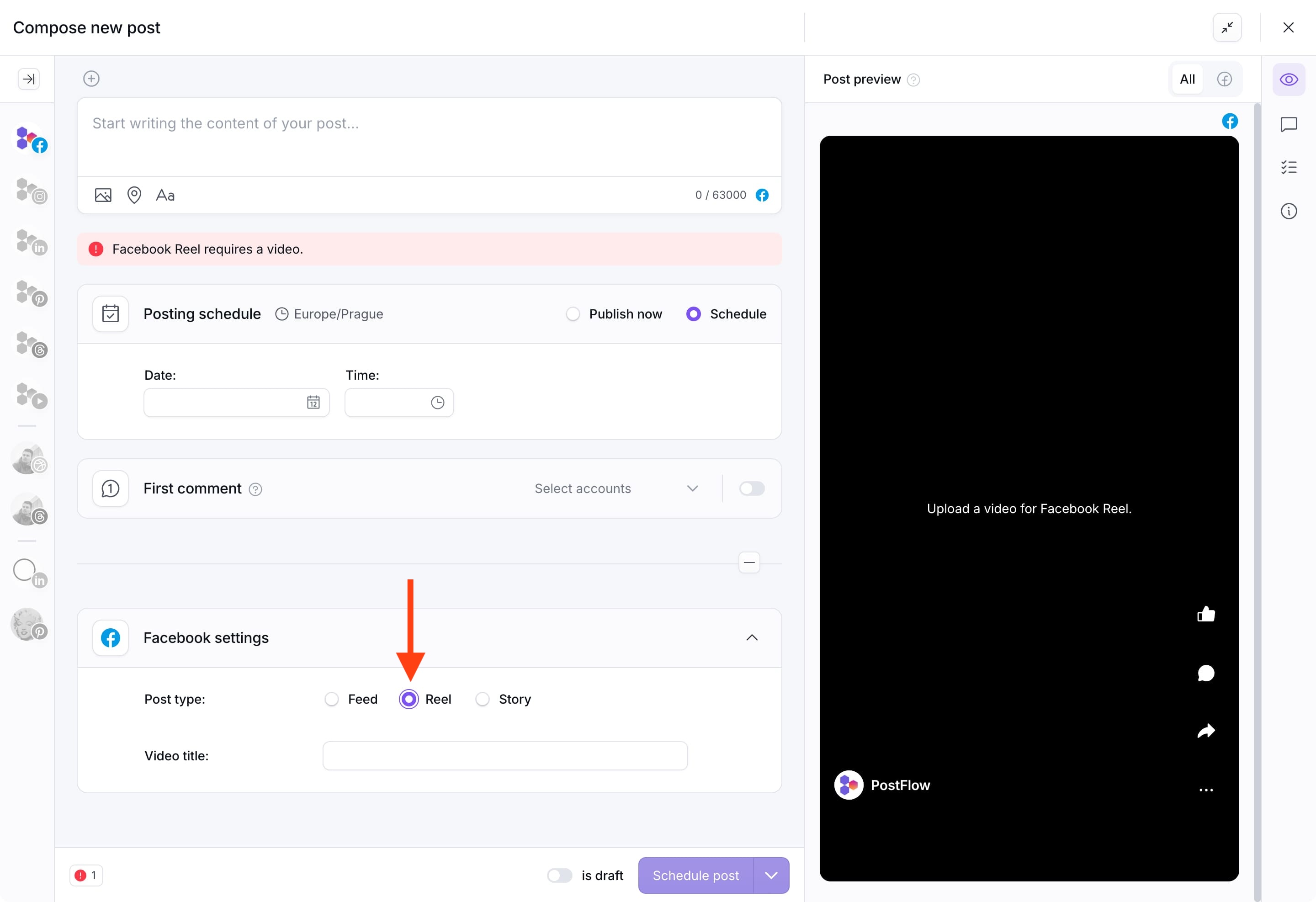 How to schedule Facebook Reels using PostFlow